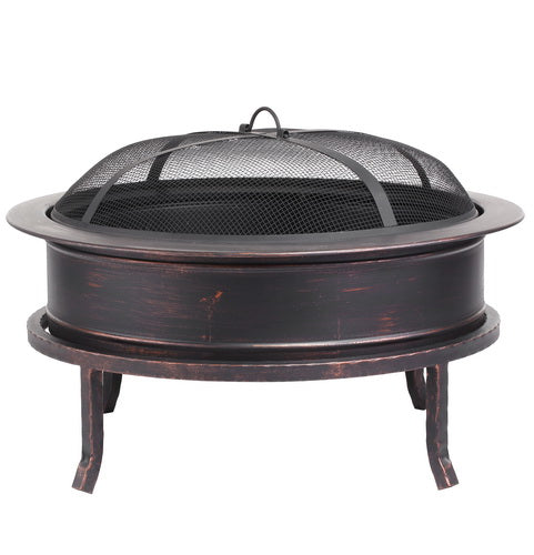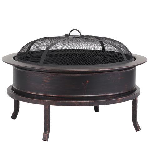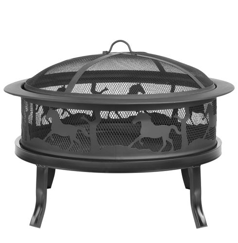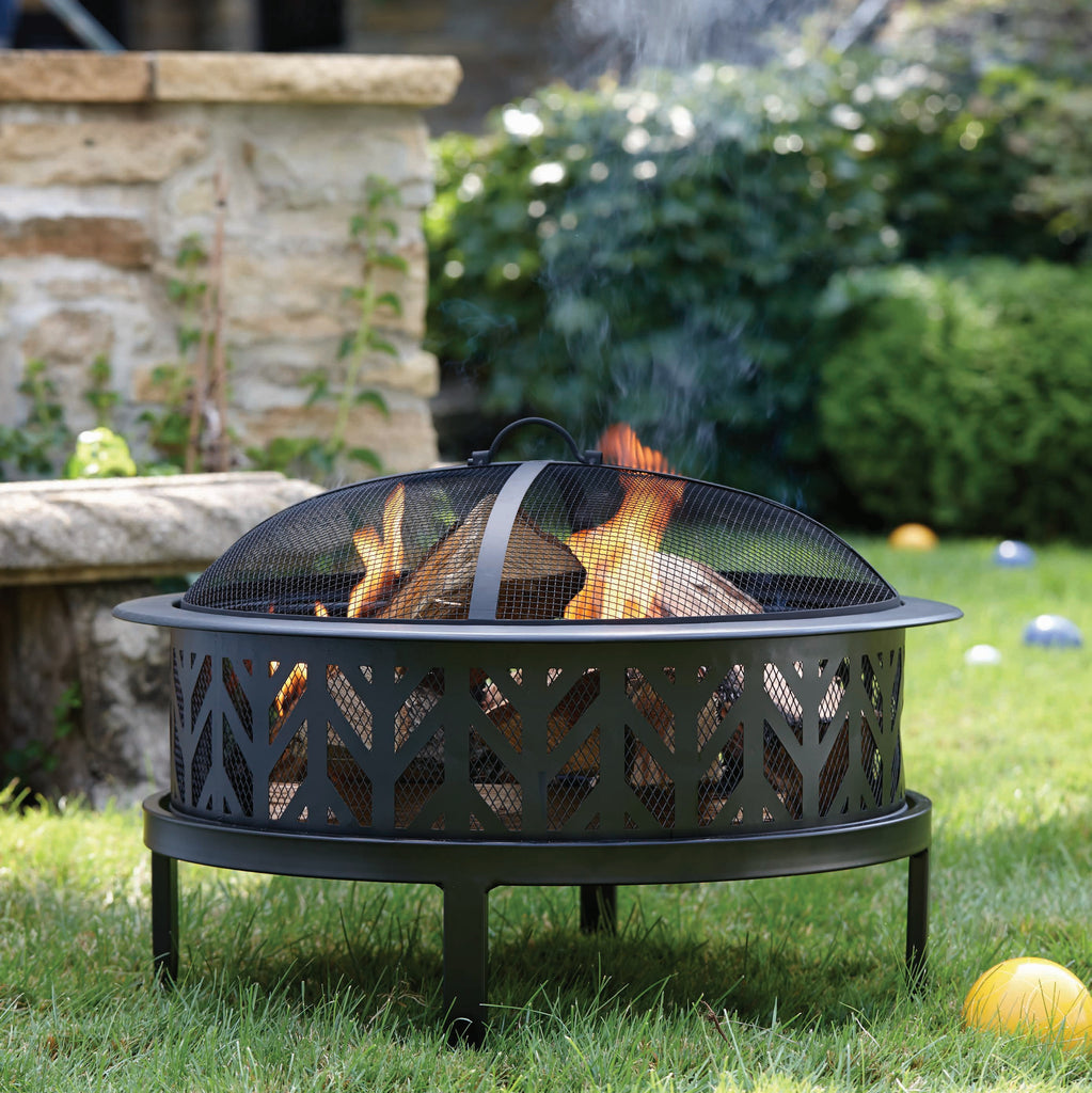 Designed with mesh panels featuring decorative cutouts for a full 360-degree view of the fire while making for a stylish addition to any backyard.